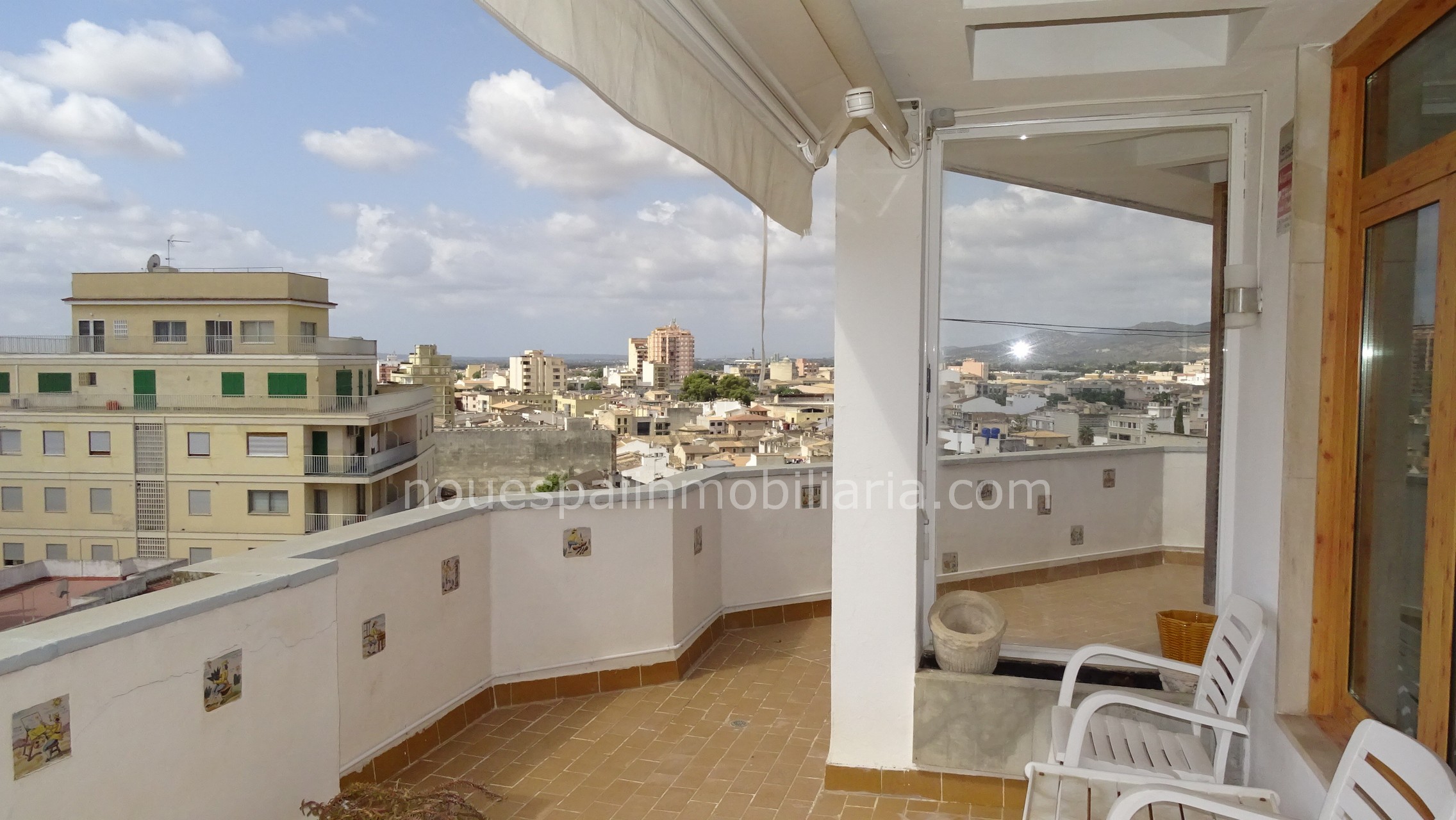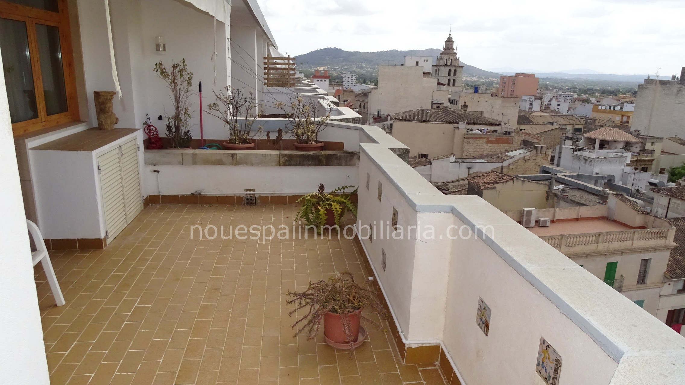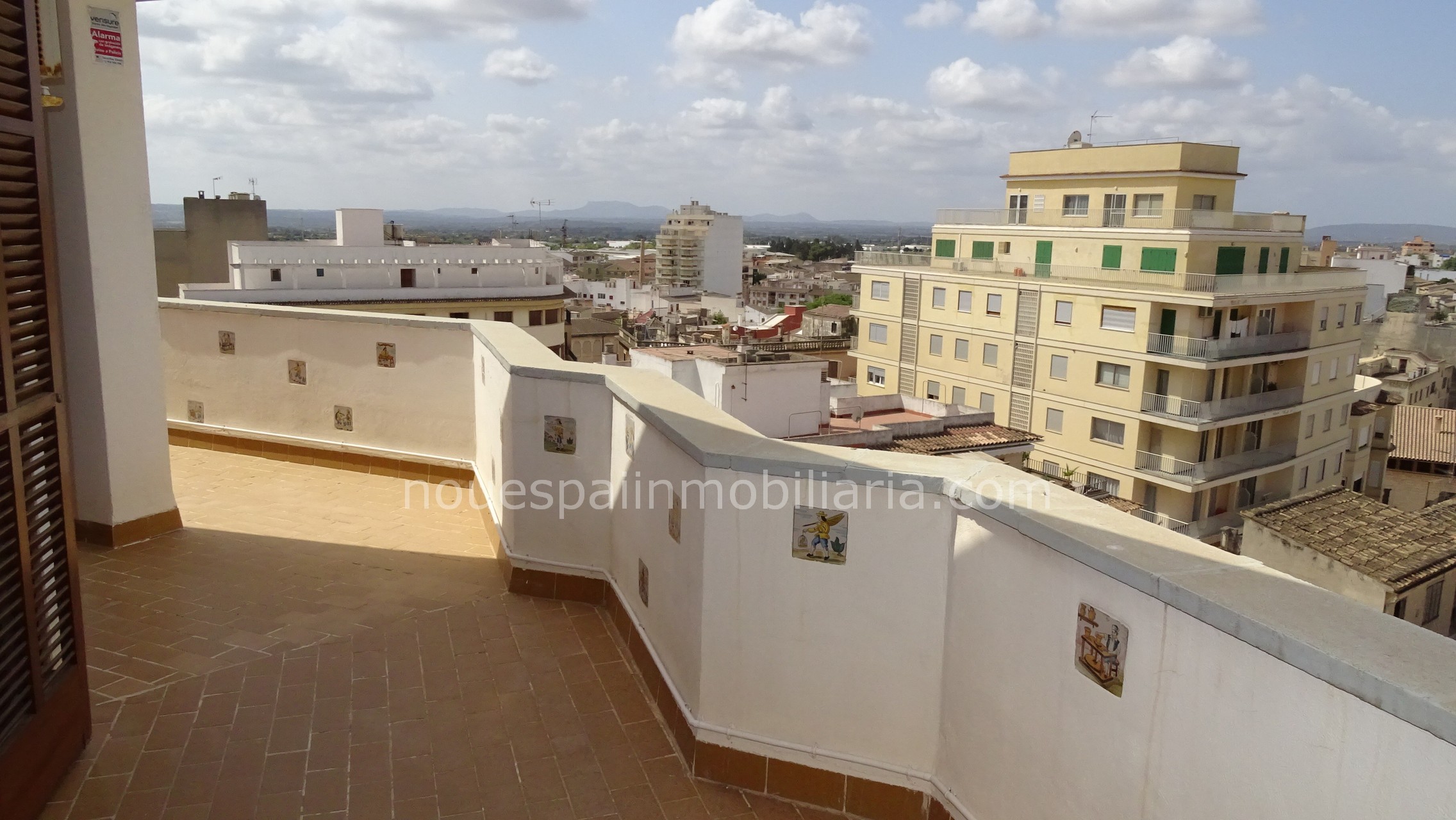 Fantastisches Penthouse zum Verkauf, im Herzen von Inca gelegen, mit Parkplatz, in einem gut nachbarschaftlichen Gebäude. Siebter Stock mit Aufzug, mit sehr freiem Blick auf die Tramuntana und Levante. Das ca. 150 m2 große Haus ist aufgeteilt in: Flur, großes Wohnzimmer mit Zugang zu Terrassen, möblierte Büroküche mit Speisekammer und Hauswirtschaftsraum, mit Zugang zu einer großen Terrasse, 3 Doppelzimmer, 3 Badezimmer, zwei der Schlafzimmer sind Suiten, mit Einbauschränken. Climalit, Klimaanlage, hochwertige Schreinerei.