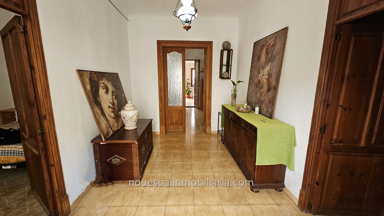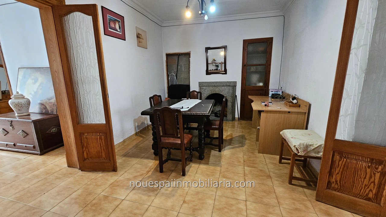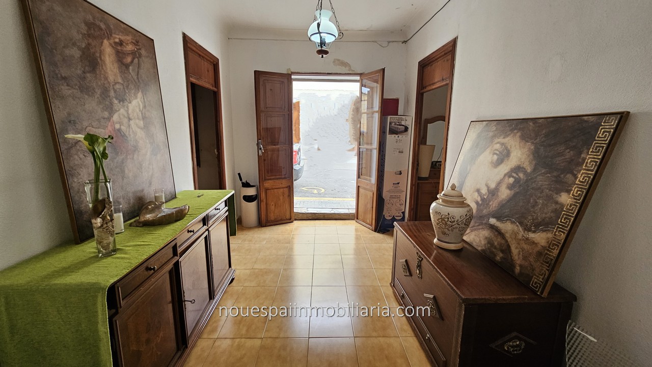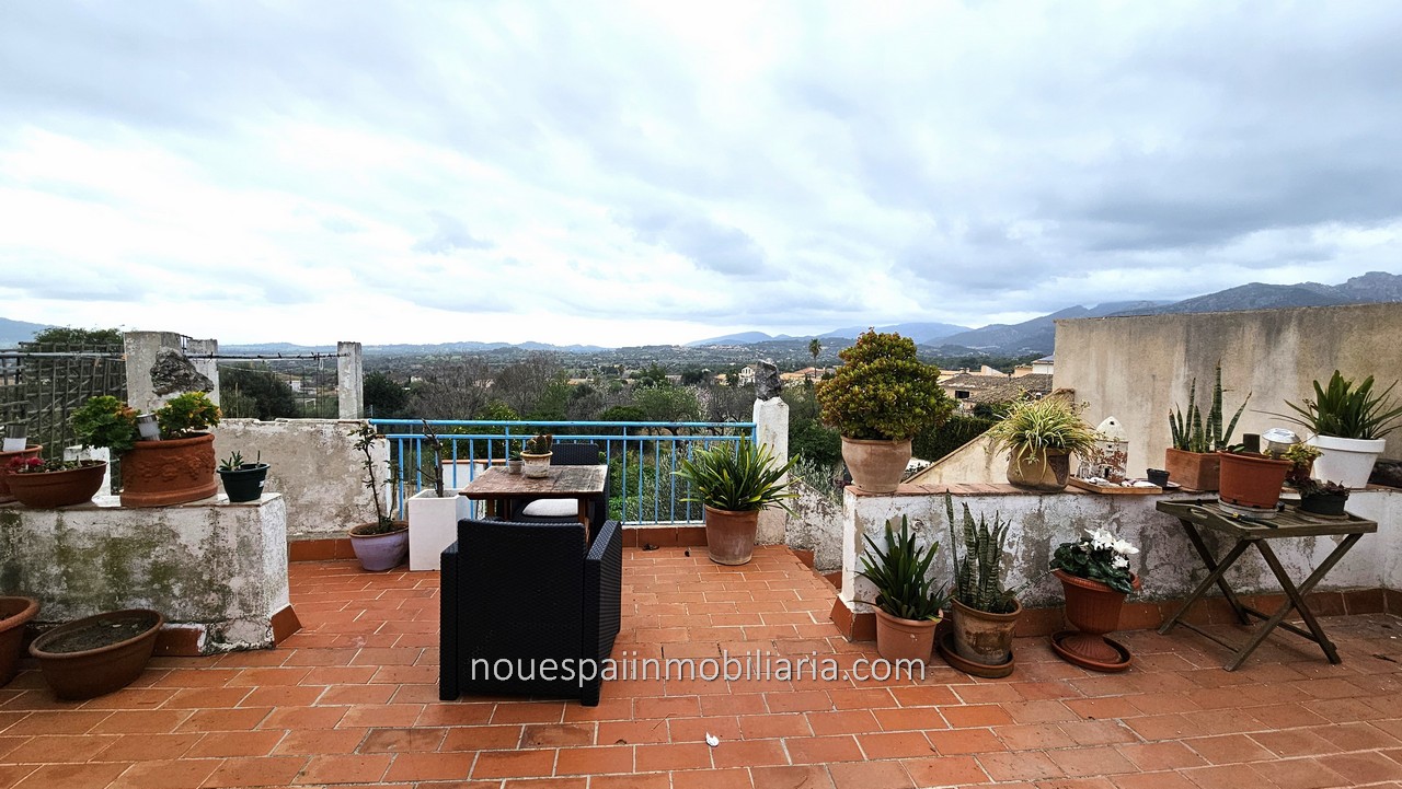 Stadthaus zum Verkauf mit fantastischer Aussicht in Campanet. Erdgeschosswohnung mit ca. 206 m2 bebauter Fläche, davon 103 m2 bewohnbar. Verteilt auf einen großen Flur, drei Doppelzimmer, Wohnzimmer mit Kamin, Esszimmer, Küche und Badezimmer. Das Haus muss modernisiert werden. Vom Wohnzimmer und der Küche aus gelangt man auf eine große Terrasse mit herrlicher Aussicht. Mit mehreren Lagerräumen und Waschküche. Wenn wir die Terrasse verlassen und nach unten gehen, finden wir einen Swimmingpool und einen Keller, in dem ein großer Abstellraum gebaut werden kann. Große Corral-Terrasse von ca. 200 m2. bewaldet. Nach Angaben der Unterkunft besteht die Möglichkeit, zwei weitere Stockwerke darüber zu bauen.