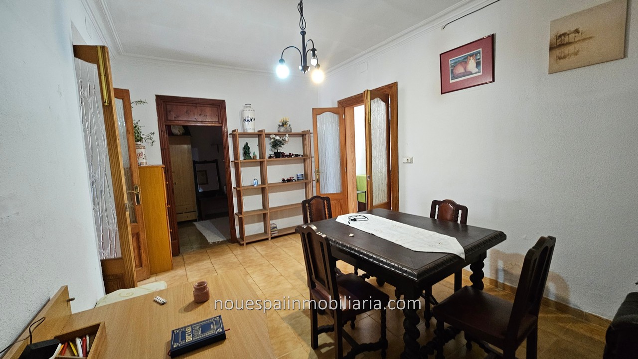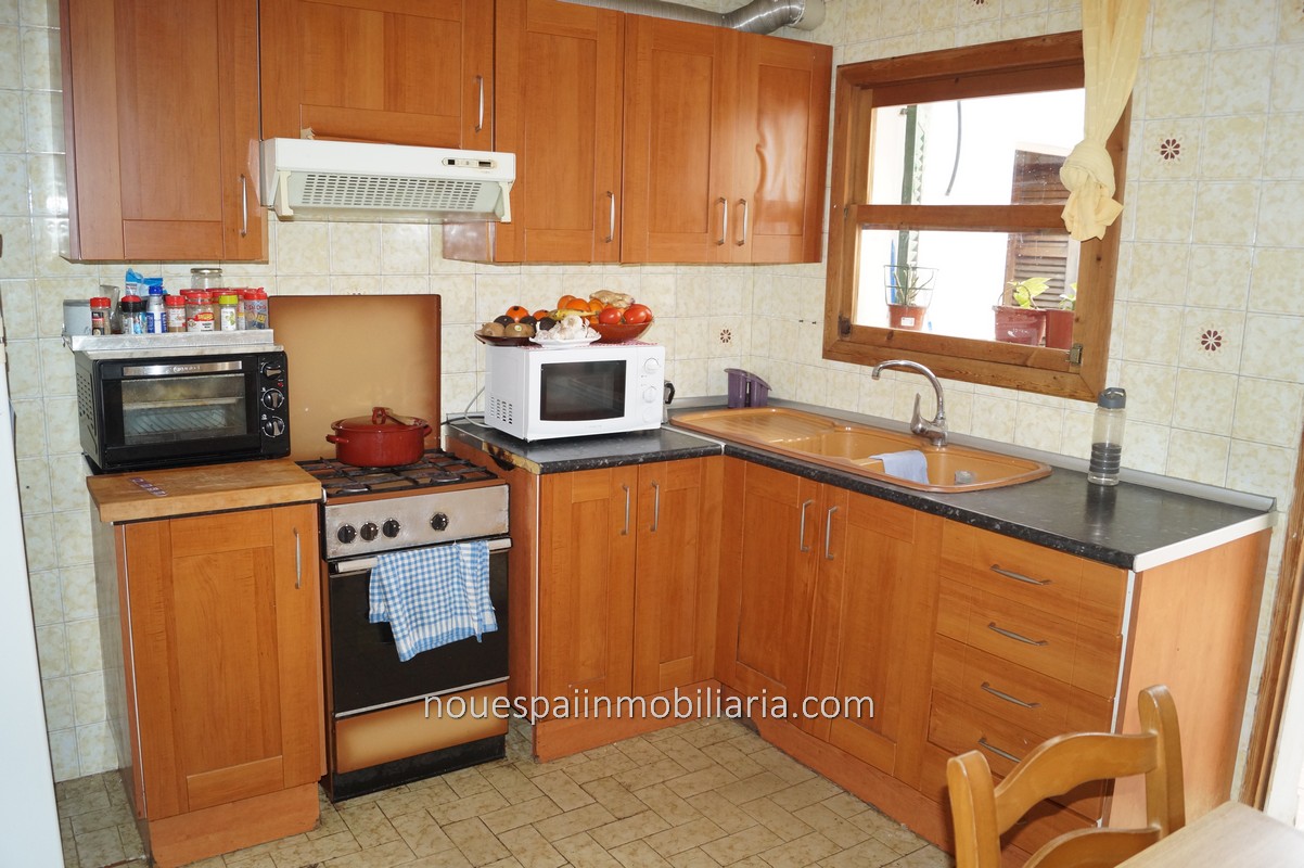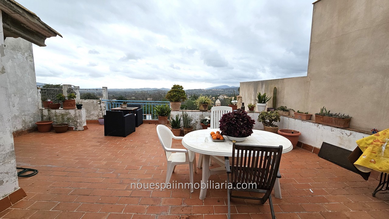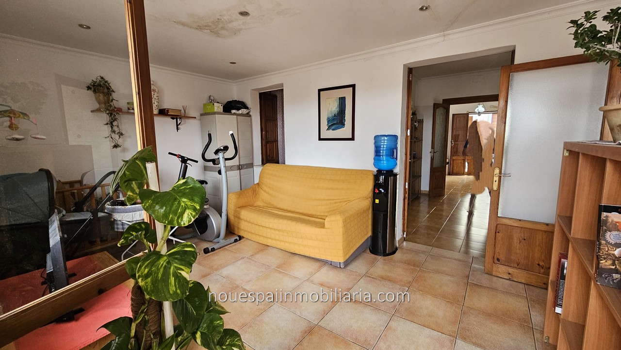 Stadthaus zum Verkauf mit fantastischer Aussicht in Campanet. Erdgeschosswohnung mit ca. 206 m2 bebauter Fläche, davon 103 m2 bewohnbar. Verteilt auf einen großen Flur, drei Doppelzimmer, Wohnzimmer mit Kamin, Esszimmer, Küche und Badezimmer. Das Haus muss modernisiert werden. Vom Wohnzimmer und der Küche aus gelangt man auf eine große Terrasse mit herrlicher Aussicht. Mit mehreren Lagerräumen und Waschküche. Wenn wir die Terrasse verlassen und nach unten gehen, finden wir einen Swimmingpool und einen Keller, in dem ein großer Abstellraum gebaut werden kann. Große Corral-Terrasse von ca. 200 m2. bewaldet. Nach Angaben der Unterkunft besteht die Möglichkeit, zwei weitere Stockwerke darüber zu bauen.