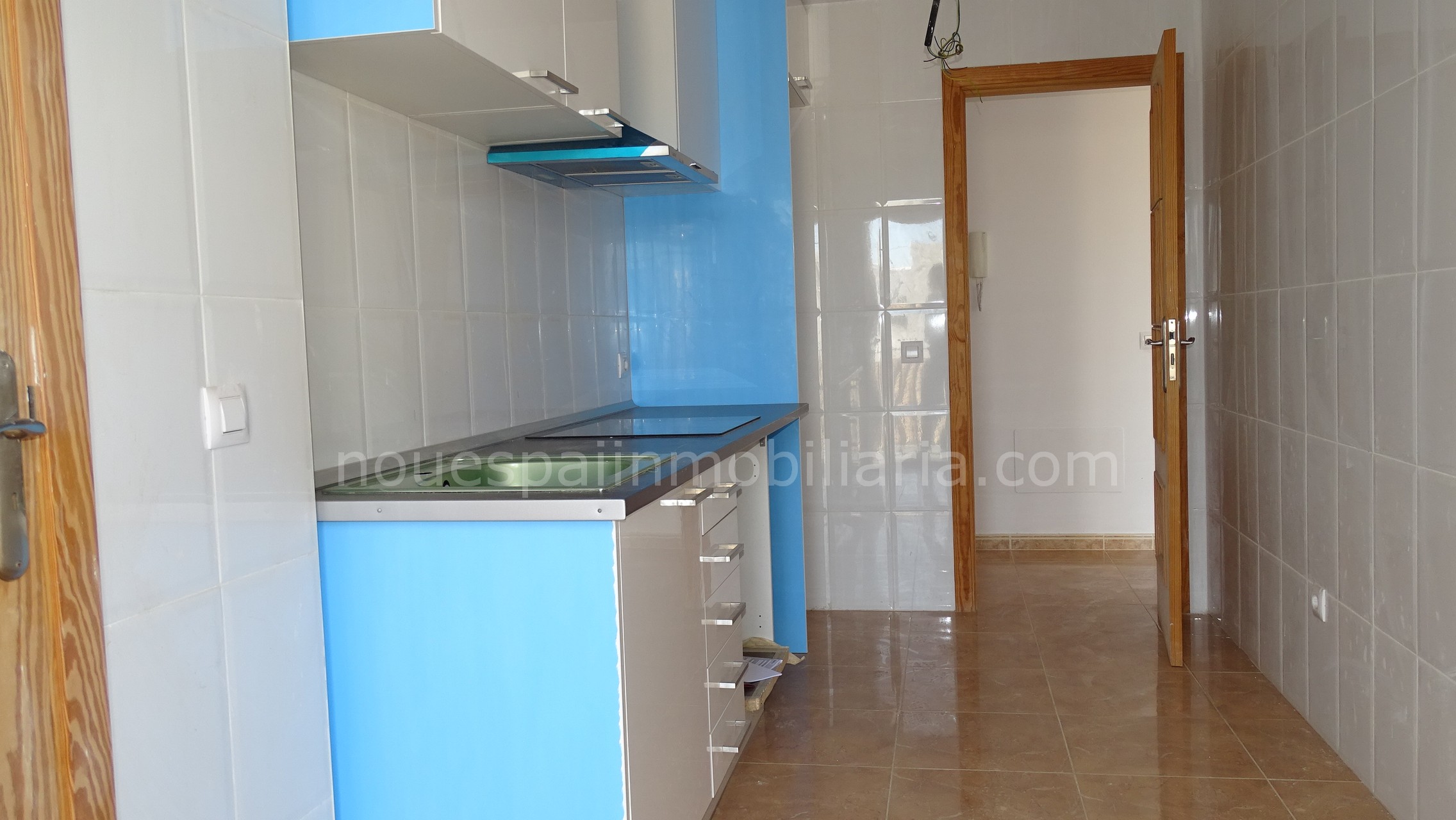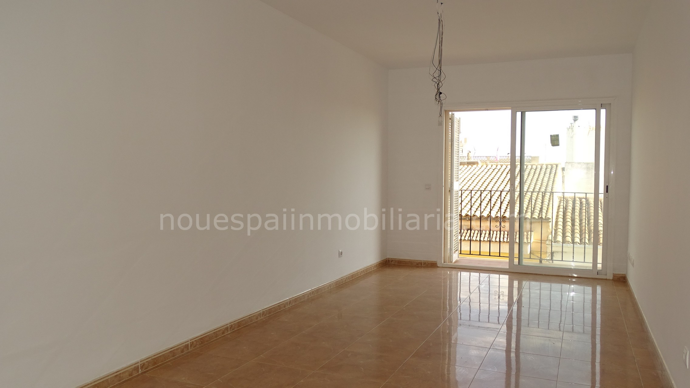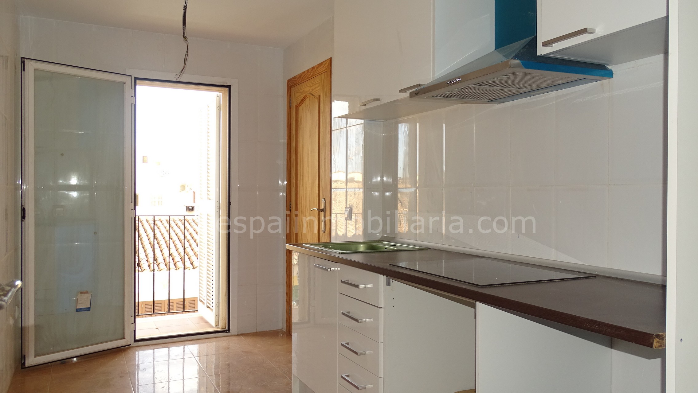 Three-bedroom apartment for sale in Sa Pobla with parking and a private roof terrace. The property comprises an entrance hall, a living-dining room with access to a balcony, a fully furnished kitchen with a balcony, and a laundry room. Three bedrooms, built-in wardrobes, two full bathrooms, one en suite. There is also a private parking space and a private roof terrace. Climalit windows.