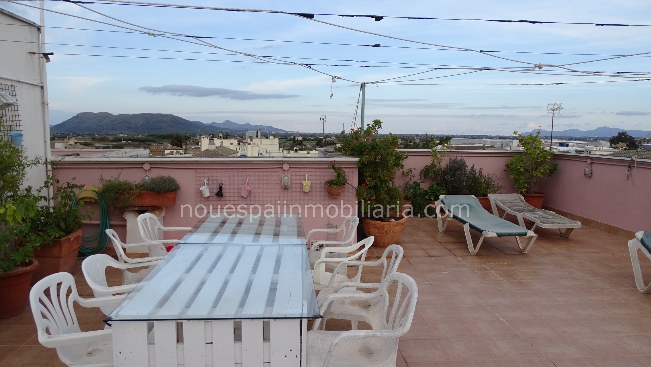 Beautiful 110m2 penthouse for sale in Sa Pobla, with an upper terrace accessible from the house, 110m2 with a relaxation area, barbecue and beautiful views of the sea and the Tramuntana mountains. The property is distributed in: entrance hall, large living room with cast iron fireplace, with access to a balcony, large fitted kitchen with office area, three bedrooms, two bathrooms, very bright and sunny, third floor with elevator, fitted wardrobes.