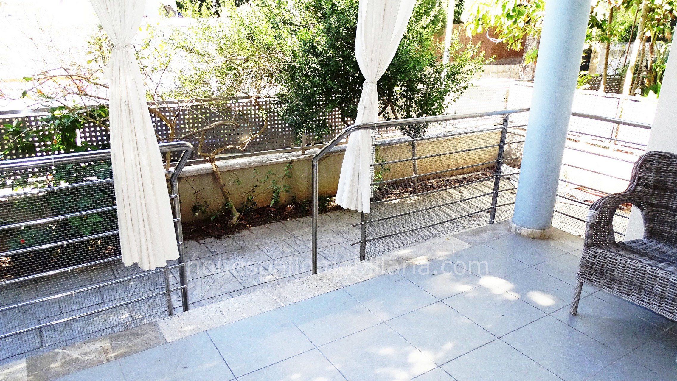Precioso apartamento duplex, en planta baja, en el Puerto de Pollensa, zona residencial, a tan solo 200 metros de la playa. La vivienda dispone de 130 m2 habitables, más jardín y varias terrazas. Se distribuye en, planta baja con amplio salón comedor con grandes ventanales, con salida a terraza y jardín, cocina completamente amueblada y equipada, con lavadero y amplia despensa, aseo. Planta piso con tres amplios dormitorios, dos baños completos, uno en suite, y con amplia terraza. Dispone de plaza de parking. Primeras calidades, aire acondicionado canalizado, persianas eléctricas… etc