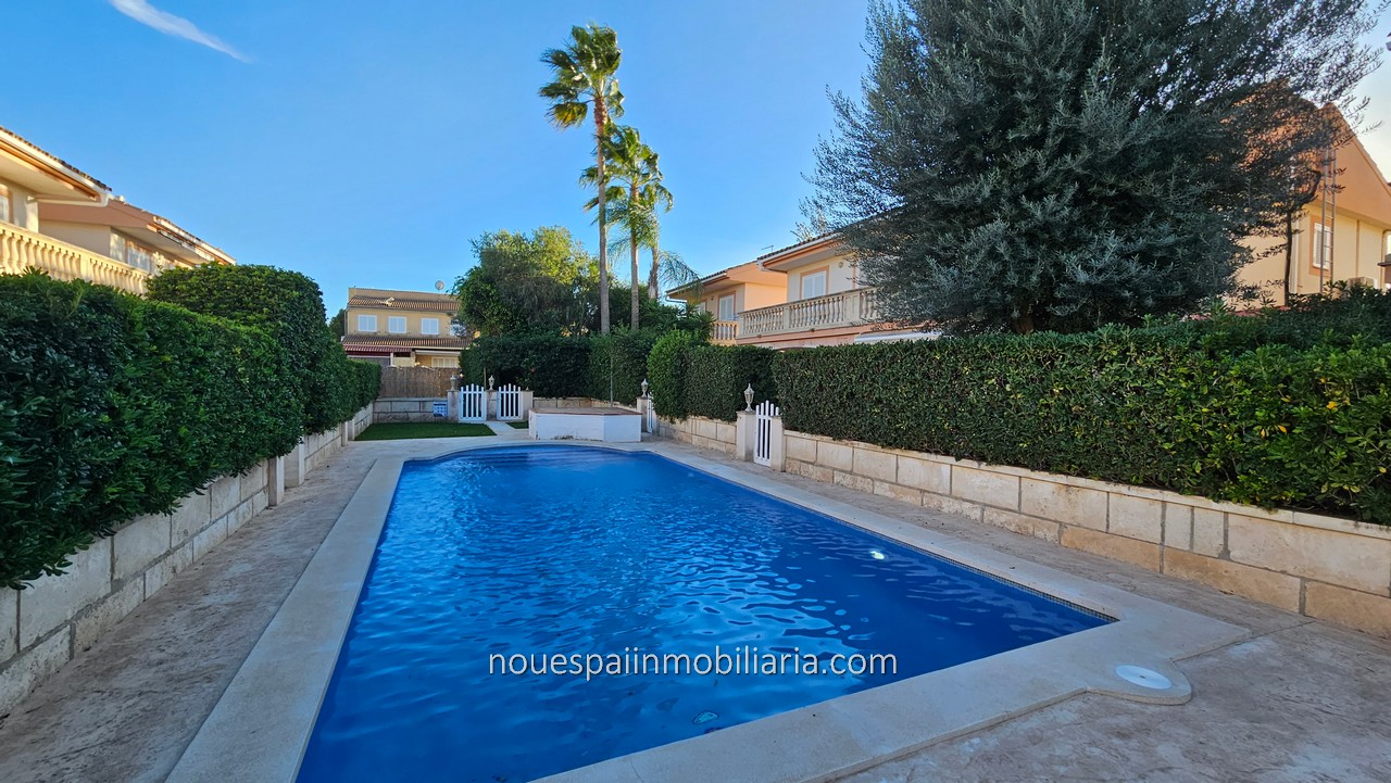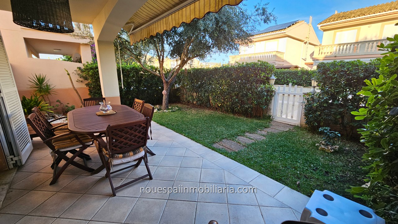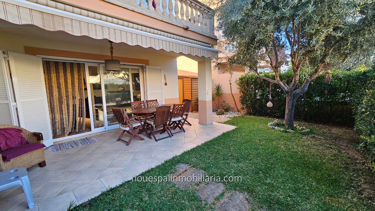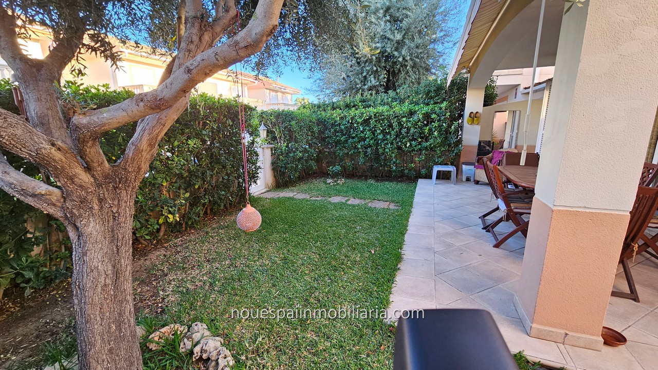 Se vende vivienda unifamiliar, independiente en Puerto de Alcudia. Zona lagos. Vivienda con 123 m2 construidos en dos plantas. Se distribuye en recibidor, amplio salón comedor con salida a jardín y terrazas. Acceso directo desde al jardín a bonita piscina comunitaria. Cocina totalmente amueblada y equipada, muy luminosa, con salida a coladuria. Aseo de cortesía. Acceso a planta primera con tres dormitorios, todos con armarios empotrados, dos de ellos con salida a terrazas. Baño completo. Ventiladores de techo, Aire acondicionado en todas las estancias. Climalit,
