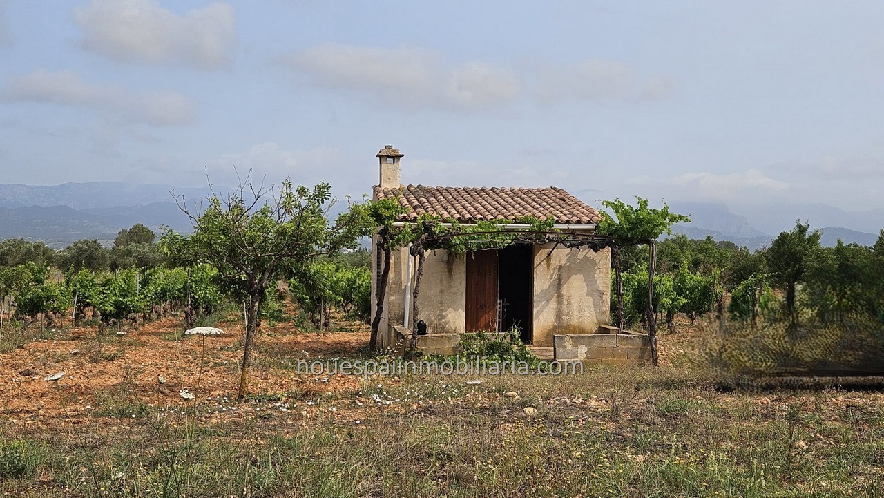 Bonita finca rustica en venta en Santa Eugenia, cuenta con una superficie de 6.366 m2, según catastro y una casita de unos 17 m2 (todo según catastro) con chimenea y pozo de agua de recogida de lluvia, con un aljibe de unos 20.000 litros. Ideal para fines de semana. Tiene en plena producción, viña de denominación Manto Negro además de producción de uva comestible. Alrededor de unas dos tonelada de uva, para una producción aproximada de 1.000 a 1.300 litros de vino. La construcción tiene certificado del Ayuntamiento, favorable. Se podría escriturar y registrar. Acceso por carretera. No tiene suministro de luz.