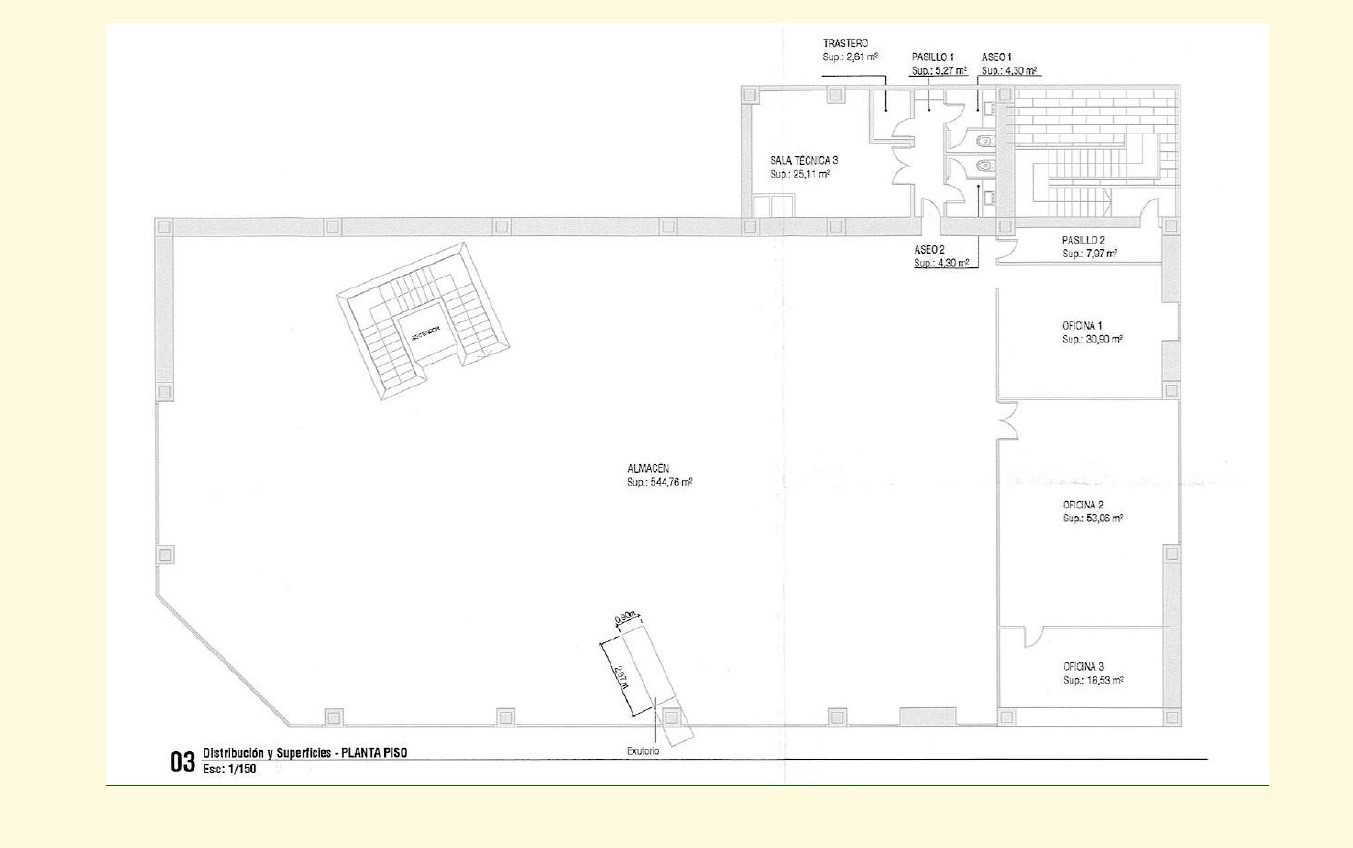 – Nave situada en primera planta, en la calle principal del Polígono Son Castelló, con 47 metros  de fachada a esa calle.