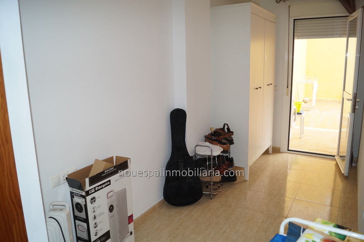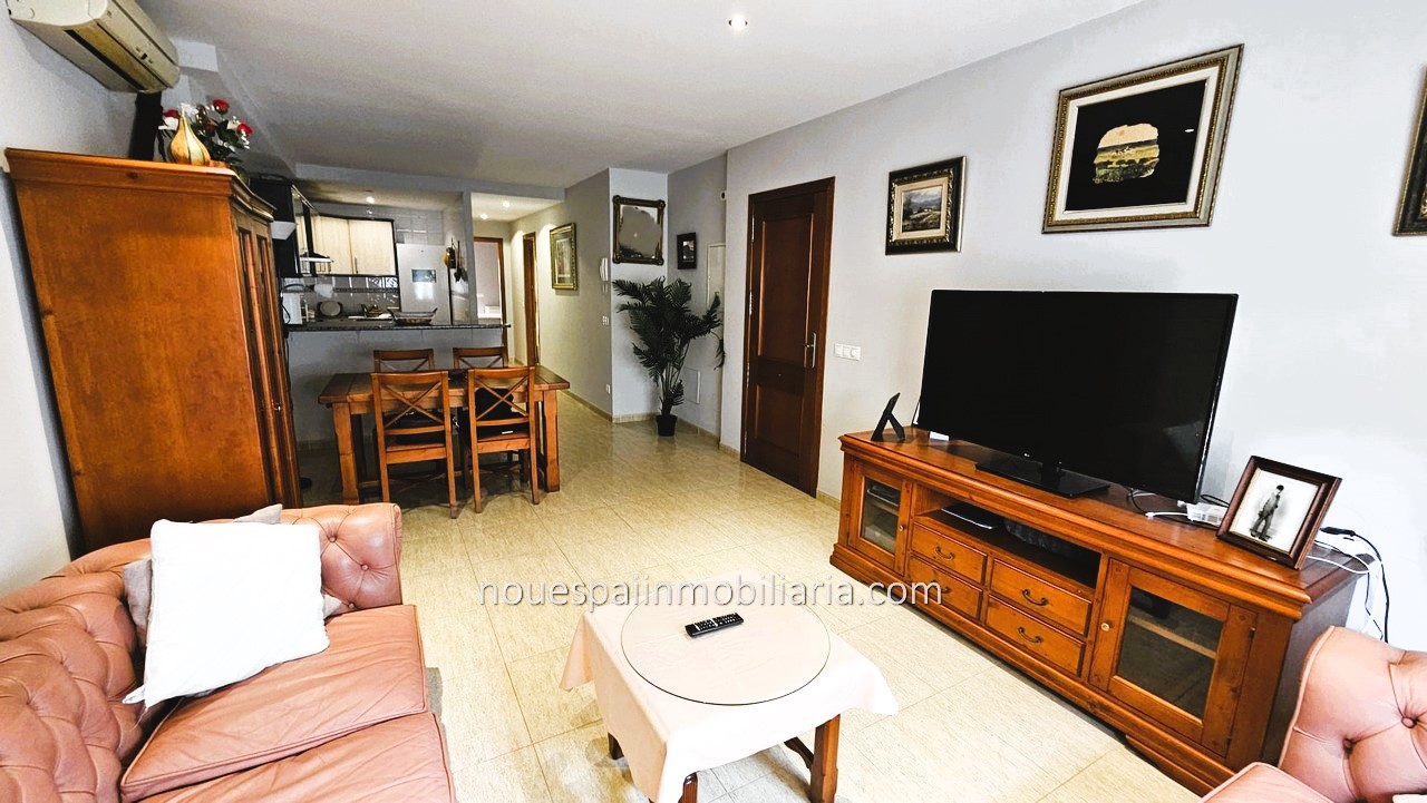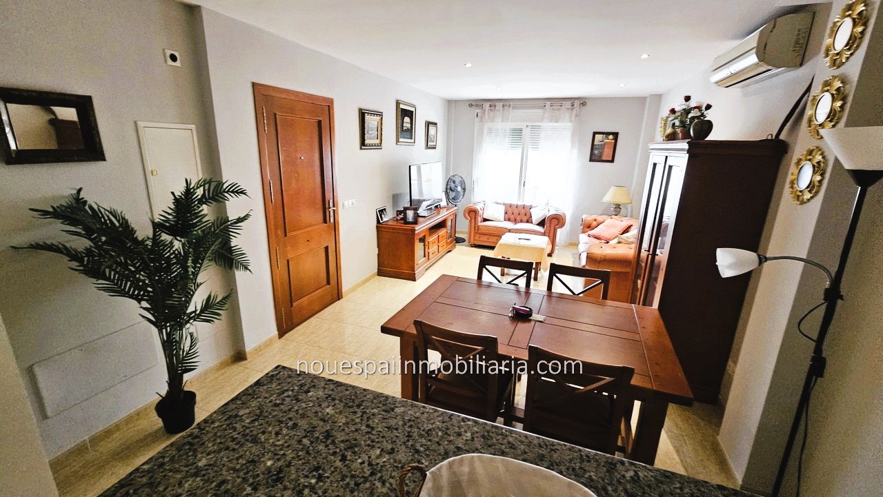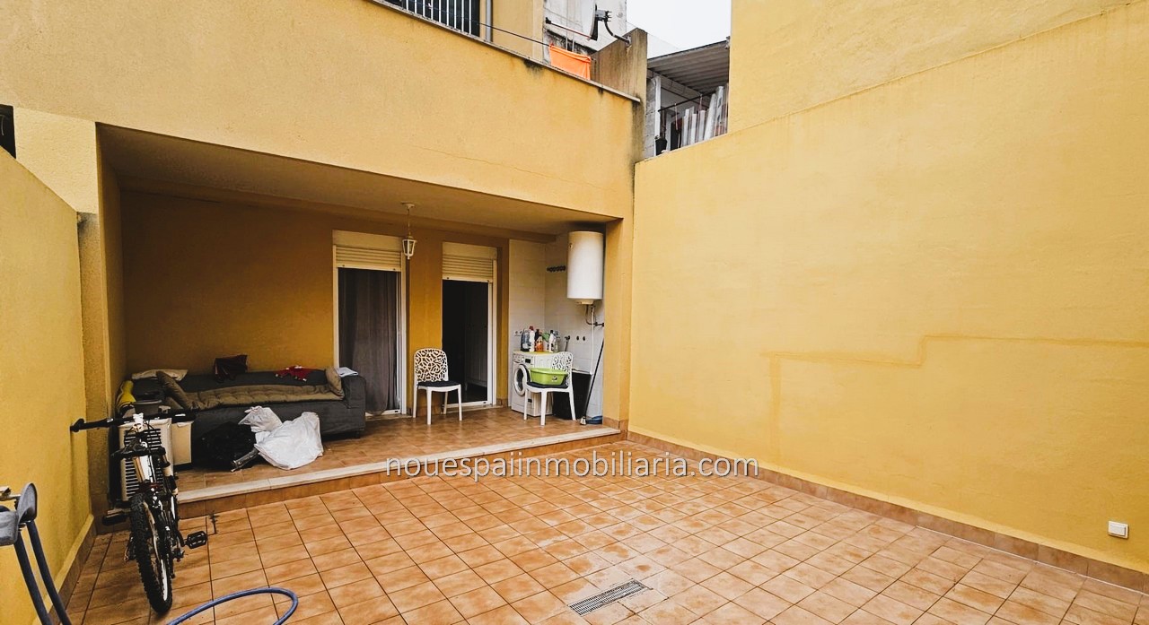 Se vende piso en planta baja, en Inca. Vivienda distribuida en amplio salón comedor con cocina vista tipo americana, totalmente amueblada y equipada. Dos dormitorios, uno doble, otro individual, con armarios empotrados, Las dos habitaciones tienen salida a un porche y a la terraza posterior Amplio baño completo. Con unos 71 m2 construidos más 23 m2 de terraza. Dispone de aire acondicionado en salón. Tan solo seis vecinos. Para entrar a vivir.