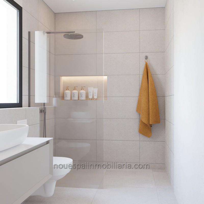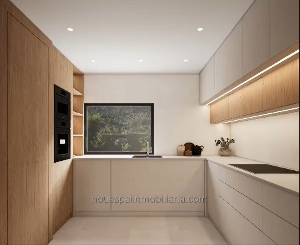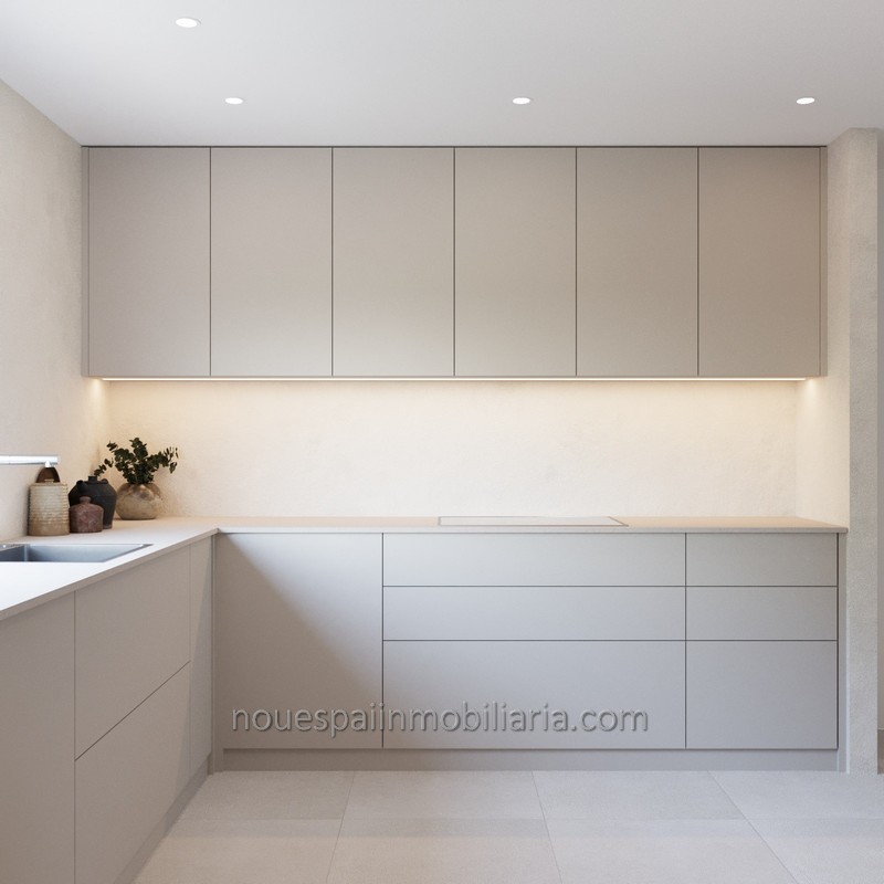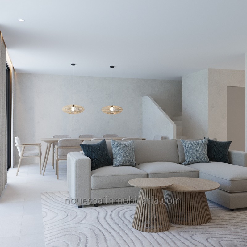 Viviendas de 120 m2 útiles, distribuidas en, planta baja con porche, con acceso a distribuidor, salón comedor con salida a terraza y jardines, con posibilidad de piscina (Consultar precio) y cocina completamente amueblada con muebles en color beige, resistentes y de fácil limpieza, con encimeras de preciosa piedra natural, garantizando limpieza y durabilidad. Con leds debajo de los muebles para una iluminación ambiental. Baño de cortesía. Planta primera con distribuidor, 3 dormitorios dobles con preciosos armarios, dos baños completos, uno en suite, y terraza.