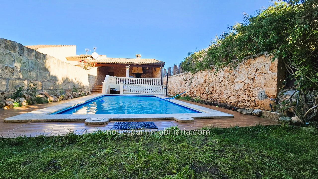 Se vende preciosa antigua casa de pueblo, construida en el 1.940, totalmente reformada. En un solar de 265 m2 se encuentra esta bonita casa de unos 269 m2 construidos de los que 156 m2 pertenecen a la vivienda. Con amplia piscina en el jardín. La vivienda construida en dos plantas consta de, amplio salón comedor con chimenea, cocina office con despensa y trastero, un dormitorio doble, baño completo y acceso a garaje, todo ello en planta baja. Planta primera con tres dormitorios, baño completo y salida a gran terraza con barbacoa. Saliendo de la cocina hay varios trasteros y la coladuría. Bonito jardín posterior con piscina. La vivienda hace esquina. No dude en visitarla.